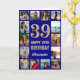 Tarjeta 39.º feliz cumpleaños Collage de fotos azul y oro