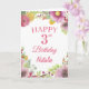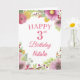 3.ᵉʳ Nacimiento Watercolor Floral Flores Pink Card con nombre y edad personalizados. Para una mayor personalización, haga clic en el botón "Personalizar" y utilice nuestra herramienta de diseño para modificar esta plantilla.