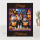 3 gatitos adorables están vestidos como brujas espeluznantes para Halloween en esta divertida tarjeta de Halloween perfecta para niños de todas las edades. Añade tu propio texto personalizado.