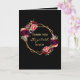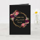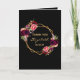 Una carta de 40 cumpleaños Gracias con plantillas para Su nombre, fecha, nota de agradecimiento y espacio para 2, dos de sus fotos. Delante: estilo bohemio moderno. Decorado con rosas de color agua en burdeos y rosa. Elegante frente de fondo negro. Un marco geométrico de oro falso y plantillas para su nombre y fecha. Interior: fondo de color negro y letras doradas. El nombre y el texto: Gracias están escritos con una escritura de estilo con letras a mano moderna.