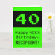 Tarjeta 40.º cumpleaños: Nerdy / Geeky Style "40" y nombre