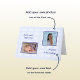 Esta tarjeta puede ser personalizada con tu propio texto y fotos para hacer un muy especial saludo de cumpleaños número 40. El frente tiene un patrón repetido de los años 40 en blanco sobre un fondo azul pálido. En la parte delantera hay dos espacios para las fotos: una es rectangular y otra cuadrada. Cada foto tiene un estrecho borde blanco y un "marco" azul marino. El texto que lo acompaña se encuentra en azul marino. Actualmente dice "Desde pequeños comienzos... ...40 años en proceso", o puede editar esto para que se adapte. El saludo en el interior es sencillo, "Feliz 40 cumpleaños", pero también puedes sustituir tu propio saludo según sea necesario. [Fotografía © Storytree Studios, Stanford, CA]