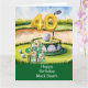 Celebre el 40 aniversario de un amante del golf con esta tarjeta única que incluye un pastel de temática golf en el campo. Perfecto para enviar cálidos deseos a un golfista que llega a este hito, esta tarjeta le agrega un toque divertido y personal a la celebración. Ideal para los amigos, la familia o cualquier aficionado al golf al que le gusta pasar el rato en la vegetación. Haga que su día especial sea aún más memorable con esta cuidadosa tarjeta de cumpleaños inspirada en el golf.