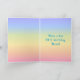 This upbeat and joyful birthday greeting card design features a cartoon-style depiction of a three-tier birthday cake having number-shaped candles on top showing the age “40“, along with the message “HAPPY 40TH BIRTHDAY,”, and a personalized recipient name. The background of the front features a multicolored pastel rainbow spectrum inspired gradient pattern. The inside features an editable birthday greeting message, or could perhaps be cleared and left blank if a message is to be written by hand instead. A colorful, personalized birthday greeting card like this might be used to acknowledge somebody’s fortieth birthday. [~Z0000625]