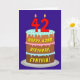 En la parte delantera de este alegre y alegre diseño de tarjetas de felicitación con temática de cumpleaños aparece una representación de una torta de tres niveles con velas en forma de numeral en la parte superior que muestran el número "42", junto con el mensaje "FELIZ CUMPLEAÑOS 42", y un nombre editable para el destinatario. El interior presenta un mensaje de bienvenida de cumpleaños de personalizable, o tal vez podría ser borrado y dejado en blanco si se va a escribir un mensaje a mano. Una tarjeta de felicitación divertida y de personalizable como esta puede ser una manera divertida de ofrecer algunos deseos de cumpleaños a alguien que está celebrando su cumpleaños número cuarenta y dos. [~Z0000620]