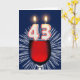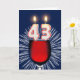 Una copa de vino de cumpleaños con velas. Las velas están compuestas por el número 43, por 43 años. Los fuegos artificiales están explotando en el fondo. Una tarjeta de cumpleaños adecuada para cualquier persona, hombre o mujer.