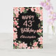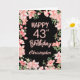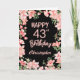 Tarjeta 43 cumpleaños color de agua rosa Floral negro
