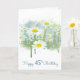 Close-up of white daisies in a country meadow with a watercolor abstract frame on white for a 45th birthday
