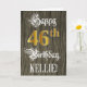 La parte delantera de este diseño formal y elegante de tarjetas de felicitación temática de cumpleaños incluye el mensaje "Feliz 46º cumpleaños", y un nombre personalizado del destinatario. Parte del mensaje está en un texto elaborado estilo script. El gran número 46th presenta un estilo de imitación dorado. El fondo tiene un patrón falso/imitación inspirado en los granos de madera. El interior tiene un mensaje de bienvenida de cumpleaños de personalizado, o tal vez podría ser borrado y dejado en blanco si un mensaje se va a escribir a mano en su lugar. Una tarjeta de felicitación ornamental y editable de cumpleaños como esta podría ser una manera respetable de entregar algunos deseos de cumpleaños a alguien que está celebrando su cumpleaños cuarenta y seis. [~Z0000561]