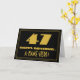 El frente de este diseño de tarjeta de felicitación de cumpleaños con tema vintage inspirado en el estilo de los años 20-30, presenta un gran número "47" inspirado en el arte deco, el mensaje "FELIZ CUMPLEAÑOS", un nombre personalizable y un patrón de borde que consiste en líneas. El fondo del frente está coloreado de negro. El interior presenta un mensaje de felicitación de cumpleaños personalizable, o podría estar en blanco si se desea escribir un mensaje a mano. Una tarjeta de cumpleaños como esta podría ser una forma divertida de enviar deseos de cumpleaños a alguien que está celebrando su cumpleaños número cuarenta y siete. [~Z0000506]