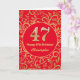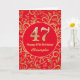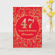 Tarjeta de cumpleaños 47 Nacimiento de patrón floral rojo y dorado. Para una mayor personalización, haga clic en el botón "Personalizar" y utilice nuestra herramienta de diseño para modificar esta plantilla.
