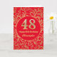 Tarjeta de cumpleaños 48º patrón floral rojo y dorado de cumpleaños. Para una mayor personalización, haga clic en el botón "Personalizar" y utilice nuestra herramienta de diseño para modificar esta plantilla.