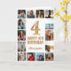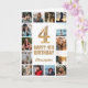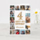 Tarjeta 4.º Feliz Cumpleaños Oro y Collage de fotos Blanco