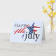 Tarjeta de felicitación de 5" x 7" con una imagen de una estrella de la bandera de los Estados Unidos y "Feliz 4 de julio" con letras rojas y azules en azul claro. El personalizable dentro del sentimiento dice "¡Vamos fiesta como si fuera 1776!" Ver confeti, pegatina redondo, pegatina de vinilo cortado por personalizado y papel de envoltura. Vea toda la colección de tarjetas de felicitación del Día de la Independencia en la categoría CARDS & PEGATINAS en la sección VACACIONES.
