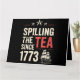 Tarjeta 4 de julio derramando el té desde 1773 patriótico