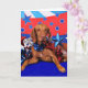Este perro de Vizsla presentó en el estilo patriótico para su 4to del retrato de julio en el salón del mascota de Teagarden. El contexto se llena de las barras y estrellas contemporáneas en rojo, blanco y azul. Para ver el photoshoot entero, haga clic encima a www.SayWoofPetography.photoreflect.com