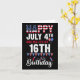 Tarjeta 4 de julio y sí es mi cumpleaños número 16 bandera