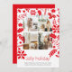 4 Foto Jolly Holiday Patrón nórdico de flores, bayas de acebo Tarjetas planas de Navidad. Personalizadas con sus propias 4 fotografías y texto de Ricaso .. agregue sus propios detalles a estas impresionantes tarjetas que harán una impresión - Una impresionante tarjeta de tonos rojos y blancos