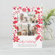 4 fotos Jolly Holiday Nordic Patrón flor, tarjeta plana de Navidad con bayas de acebo. Personalizadas con sus propias 4 fotografías y texto de Ricaso .. agregue sus propios detalles a estas impresionantes tarjetas que causarán sensación - Una tarjeta impresionante de tonos rojos y blancos