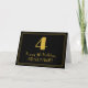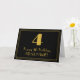 Este diseño de tarjeta de felicitación de cumpleaños con tema de apariencia vintage y de la década de 1920 presenta un gran número "4" con estilo art déco, el mensaje "Feliz cumpleaños número 4", un nombre personalizable y un patrón de borde que consiste en líneas delgadas en la parte delantera. El fondo de la parte delantera está coloreado de negro. El interior tiene un mensaje de felicitación de cumpleaños editable, o quizás podría estar en blanco si se desea escribir un mensaje a mano. Una tarjeta de felicitación de cumpleaños personalizada como esta podría ser una forma divertida de enviar un mensaje de felicitación de cumpleaños a alguien que está celebrando su cuarto cumpleaños.