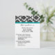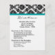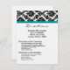 Esta tarjeta 4x5 color negro Damask Verde azulada de recepción turquesa y dirección de ceremonias es perfecta para que cualquier pareja coloque dentro de sus invitaciones de boda para que sus destinatarios tengan indicaciones para la ceremonia y a donde se lleva a cabo la recepción. Estos están equipados con sobres blancos estándar, pero se puede descartarlos ya que los clientes no los necesitarán.