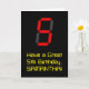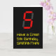 La parte delantera de este diseño de tarjeta de felicitación de cumpleaños divertida y geek presenta un gran número "5" con una apariencia de estilo de pantalla digital de siete segmentos rojos, junto con el mensaje "Feliz cumpleaños 5", y un nombre personalizable, sobre un fondo de color negro. El interior presenta un mensaje de felicitación de cumpleaños personalizado, o quizás podría estar en blanco si se desea escribir un mensaje a mano en su lugar. Una tarjeta de cumpleaños personalizable como esta podría ser una forma divertida de enviar un mensaje en celebración del quinto cumpleaños de alguien.
