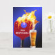 Paddle rojo de bola de pickleball con bola azul en llamas y vaso de cerveza en un brillante fondo azul para 50 años. Se puede cambiar el color de fondo. Se puede cambiar la edad de nacimiento. Todo el texto es editable.