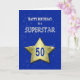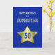 50.ª tarjeta de cumpleaños para una superestrella. Una gran estrella dorada que lleva la edad flota en el cielo. En el fondo las estrellas brillan. Una gran tarjeta de cumpleaños para alguien muy especial.