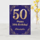 Tarjeta 50.º marco Purpurina azul y dorado de la marina de