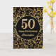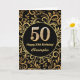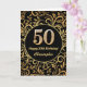Tarjeta 50.º natalicio Patrón floral de oro y negro