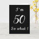50 Así que qué graciosa tarjeta de cumpleaños 50 en blanco y negro. Carta de bienvenida moderna en tipografía en blanco y negro para alguien que celebra su cumpleaños número 50. Viene con una cita graciosa y inspiradora que tengo 50 años, así que qué, y es perfecta para una persona con sentido del humor. Puede cambiar el número de edad.