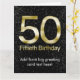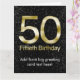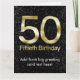 Tarjeta 50.o Cumpleaños, encanto negro elegante del oro