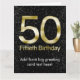 Rico, sofisticado y elegante, este 50.o cumpleaños destella con el brillo y el purpurina del oro metálico de la mirada, dorados en un final brillante, con un fondo negro del modelo de la chispa. Seguro para traer un aire de atractivo y de bling a cualquier quincuagésima idea de la celebración, del fiesta o del regalo del cumpleaños. © CustomInvitesOnline de Copyright del diseño.