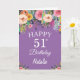 51ª acuarela Floral Flowers Purple Card con nombre y edad personalizados. Para una mayor personalización, haga clic en el botón "Personalizar" y utilice nuestra herramienta de diseño para modificar esta plantilla.