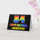 La parte delantera de este colorido, divertido y alegre diseño de tarjetas de felicitación con temática de cumpleaños incluye un gran número "54" y el mensaje "FELIZ CUMPLEAÑOS", ambos con un coloreado de patrones inspirado en el gradiente del espectro del arcoiris, junto con un audaz nombre de destinatario personalizado amarillo. En la parte delantera también hay un fondo de color negro claro. El interior presenta un mensaje de bienvenida de cumpleaños de personalizado, o tal vez podría ser borrado y dejado en blanco si se va a escribir un mensaje a mano. Una emocionante tarjeta de cumpleaños de personalizable como esta podría ser una manera divertida de celebrar el cincuenta y cuarto cumpleaños de alguien. [~Z0000472]