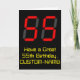 La parte delantera de este diseño de tarjetas de felicitación temática de cumpleaños geek y nerd presenta un gran número "55" con una apariencia inspirada en una pantalla digital de siete segmentos de color rojo, junto con el mensaje "Ten a Great 55th Birthday" y un nombre personalizado, en un fondo de color negro. El interior presenta un mensaje de bienvenida de cumpleaños personalizado, o tal vez podría ser borrado y dejado en blanco si se va a escribir un mensaje a mano. Una tarjeta de cumpleaños de personalizable como esta podría ser una manera divertida de reconocer el 55 cumpleaños de alguien. [~Z0000386]
