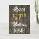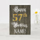 La parte delantera de este lujoso y elegante diseño de tarjetas de felicitación con temática de cumpleaños incluye el mensaje "Feliz cumpleaños número 57", y un nombre editable para el destinatario. Parte del mensaje está en un texto elegante estilo script, el gran número "57th" presenta un patrón de aspecto falso/imitación de inspiración dorada, y el fondo tiene un patrón falso/imitación inspirado en los granos de madera. El interior tiene un mensaje de bienvenida de cumpleaños de personalizable, o tal vez podría ser borrado y dejado en blanco si un mensaje se va a escribir a mano en su lugar. Una tarjeta de felicitación formal y personalizada de cumpleaños como esta podría ser una manera respetable de enviar un mensaje de felicitación de cumpleaños a alguien que está celebrando su cumpleaños número cincuenta y siete. [~Z0000561]