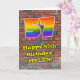 Este fascinante y vibrante arte callejero urbano y diseño de tarjetas de felicitación de cumpleaños con tema de graffiti presenta un gran número "57" con un patrón inspirado en el gradiente multicolor del espectro arcoiris, junto con el mensaje "Feliz cumpleaños número 57", y un nombre personalizado. El fondo del frente tiene un patrón de pared de ladrillo. El interior tiene un mensaje personalizado de bienvenida de cumpleaños, o tal vez podría ser borrado y dejado en blanco si se va a escribir un mensaje a mano. Una tarjeta de felicitación de cumpleaños vibrante y personalizada como esta podría ser una manera divertida de enviar un mensaje de felicitación de cumpleaños a alguien que está celebrando su cumpleaños número cincuenta y siete. [~Z0000586]