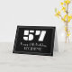 Este inspirado diseño de tarjetas de felicitación de cumpleaños estilo Roaring '20 presenta un gran estilo Art Déco inspirado en el número "57", el mensaje "Happy 57th Birthday", un nombre editable, y un patrón de frontera que consiste en líneas delgadas en el frente. El fondo del frente es negro de color. El interior tiene un mensaje de bienvenida de cumpleaños personalizado, o tal vez podría ser borrado y dejado en blanco si se va a escribir un mensaje a mano. Una tarjeta de felicitación de cumpleaños editable como esta podría ser usada para celebrar el cumpleaños cincuenta y siete de alguien. [~Z0000486]