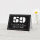 Este clásico diseño de tarjetas de felicitación inspirado en el tema del cumpleaños de los años 20-30 presenta un gran estilo Art Déco inspirado en el número "59", el mensaje "Feliz cumpleaños número 59", un nombre personalizado, y un patrón de frontera que consiste en líneas delgadas en el frente. El fondo del frente es negro de color. El interior tiene un mensaje de saludo de cumpleaños modificable, o tal vez podría ser borrado y dejado en blanco si se va a escribir un mensaje a mano. Una tarjeta de felicitación de cumpleaños personalizada como esta podría ser enviada para celebrar el 59º cumpleaños de alguien. [~Z0000486]