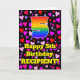 La parte delantera de este diseño de tarjetas de felicitación alegre y divertida con temática de cumpleaños presenta un gran número "5" con un patrón inspirado en el gradiente del espectro arcoiris, junto con el mensaje "Feliz quinto cumpleaños", y un nombre personalizado. El fondo de la parte delantera presenta un patrón de formas cardíacas púrpura, roja y rosa de varios tamaños. El interior tiene un mensaje de bienvenida de cumpleaños personalizado, o tal vez podría ser borrado y dejado en blanco si se va a escribir un mensaje a mano. Una animada y personalizada tarjeta de felicitación de cumpleaños como esta podría ser una manera divertida de enviar algunos deseos de cumpleaños a alguien que está celebrando su quinto cumpleaños. [~Z0000551]