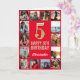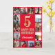 Tarjeta 5.º Feliz Cumpleaños Collage de fotos Rojo y Oro