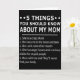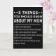 Tarjeta 5 Things You Should Know About My Mom Tee Shirt Gi