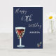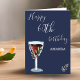 60.ª Tarjeta Azul de la Marina Rosa de Vino Rojo de Cumpleaños. Tarjeta de cumpleaños 60 para ella o para él. La decoración está compuesta por una copa de vino tinto acuarela, rosas y ramas de fondo azul marino. El texto está en blanco y es completamente personalizable - personalizarlo con tu nombre y cualquier edad, y agregar tu mensaje dentro o borrar.
