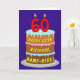 En la parte delantera de este alegre y divertido diseño de tarjetas de felicitación con temática de cumpleaños aparece una representación de una torta de tres niveles con velas en forma de numeral en la parte superior que muestran el número "60", junto con el mensaje "FELIZ CUMPLEAÑOS 60", y un nombre de destinatario editable. El interior tiene un mensaje personalizado de bienvenida de cumpleaños, o tal vez podría ser borrado y dejado en blanco si se va a escribir un mensaje a mano. Una tarjeta de felicitación alegre y personalizada de cumpleaños como esta podría ser enviada para celebrar el sexagésimo cumpleaños de alguien. [~Z0000620]