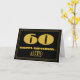 El frente de este diseño de tarjeta de felicitación de cumpleaños con apariencia vintage presenta un gran número "60" inspirado en la apariencia del art déco, el mensaje "FELIZ CUMPLEAÑOS", un nombre personalizable y un patrón de borde que consiste en líneas. El fondo de la parte frontal está coloreado de negro. El interior presenta un mensaje de felicitación de cumpleaños personalizado, o quizás podría estar en blanco si se desea escribir un mensaje a mano en su lugar. Una tarjeta de cumpleaños personalizada como esta podría ser una forma divertida de reconocer el cumpleaños número sesenta de alguien.