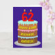 Tarjeta 62º cumpleaños: Torta divertida y velas + nombre p