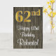 Tarjeta 62° cumpleaños: Elegante apariencia de oro falso #