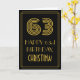 La fachada de este estilo vintage y el estilo de los años 1920-1930 inspirado en el diseño de la tarjeta de felicitación de cumpleaños presentan un gran estilo Art Déco inspirado en el número "63", el mensaje "FELIZ CUMPLEAÑOS 63", un nombre personalizado, y un patrón de frontera compuesto de líneas. El interior presenta un mensaje de bienvenida de cumpleaños editable, o tal vez podría ser borrado y dejado en blanco si se va a escribir un mensaje a mano. Una tarjeta de cumpleaños personalizada como esta podría ser una manera divertida de reconocer el 63 cumpleaños de alguien. [~Z0000394]