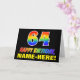 La parte delantera de este alegre, divertido y colorido diseño de tarjetas de felicitación de cumpleaños incluye un gran número de "64" y el mensaje "FELIZ CUMPLEAÑOS", ambos coloreados con un patrón inspirado en el gradiente del espectro del arcoiris, junto con un audaz nombre del destinatario del personalizado amarillo. En la parte delantera también hay un fondo de color negro claro. El interior tiene un mensaje de bienvenida de cumpleaños de personalizable, o tal vez podría ser borrado y dejado en blanco si un mensaje se va a escribir a mano en su lugar. Una vibrante tarjeta de cumpleaños de personalizable como esta podría ser una manera divertida de celebrar el 64 cumpleaños de alguien. [~Z0000472]